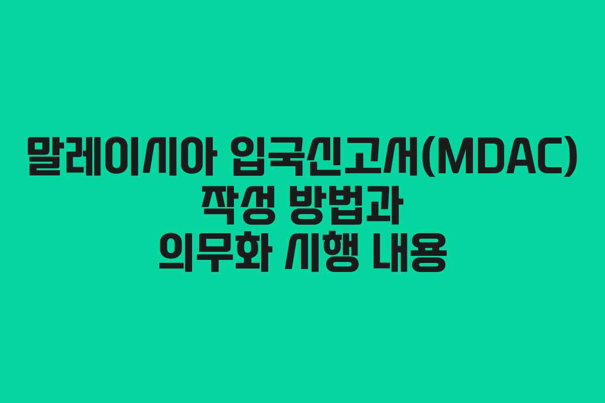 2026년 1월부터 말레이시아에 입국하는 모든 외국인은 전자 입국신고서(MDAC)를 필수로 작성해야 한다는 새로운 규정이 도입되었습니다. 이 제도는 효율적인 입국 절차를 위해 마련된 것으로, 이를 준수하지 않을 경우 입국이 거부될 수 있습니다. 그러므로 여행객들은 반드시 MDAC를 작성해야 하며, 이를 통해 원활한 입국 절차를 경험할 수 있습니다.
