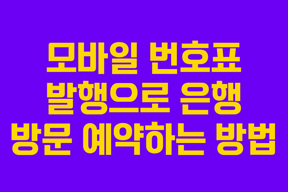 모바일 번호표 발행 서비스를 통해 은행 방문을 보다 효율적으로 예약할 수 있습니다. 이 서비스를 활용하여 대기 시간 스트레스를 줄이고, 보다 원활한 은행 업무를 경험하시기 바랍니다.