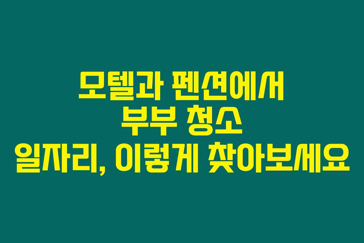 부부가 함께 일할 수 있는 청소 일자리를 찾고 계신가요? 모텔이나 호텔 그리고 펜션에서 같이 일할 수 있는 기회가 많아요. 하지만 어떤 조건이 있는지 주의 깊게 살펴봐야 해요. 아래를 읽어보시면 여러분에게 맞는 일자리를 찾는 데 큰 도움이 될 거예요.