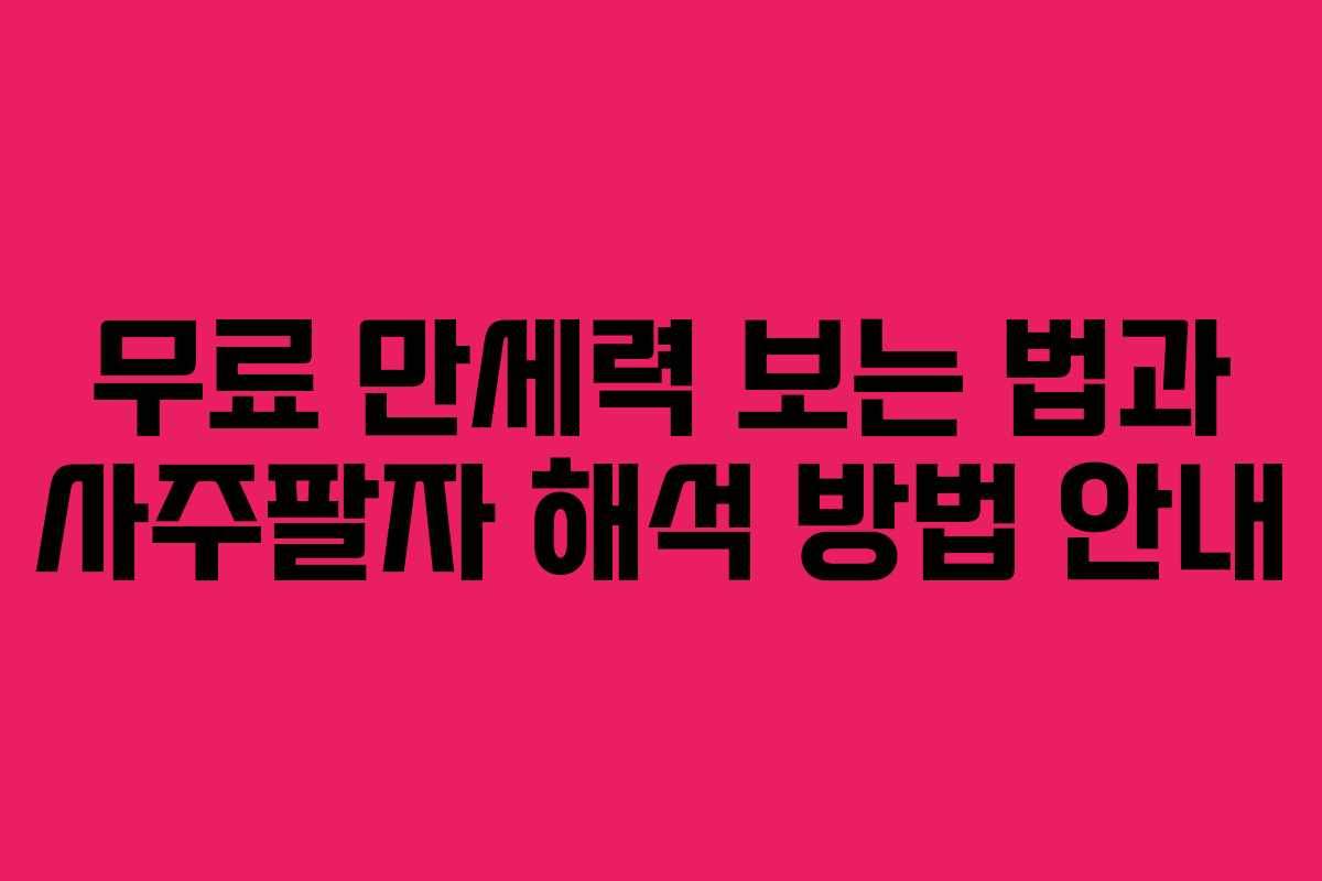무료 만세력은 자신의 운명과 성격을 이해하는 데 도움을 줄 수 있는 유용한 도구입니다. 많은 사람들이 자신의 사주팔자를 알고 싶어하지만, 비용이나 시간 때문에 망설이는 경우가 많습니다. 하지만 이제는 집에서도 간편하게 무료 만세력 사이트를 통해 자신의 사주를 확인할 수 있습니다. 이번 글에서는 무료 만세력 보는 법과 사주팔자 해석 방법을 자세히 알아보겠습니다.