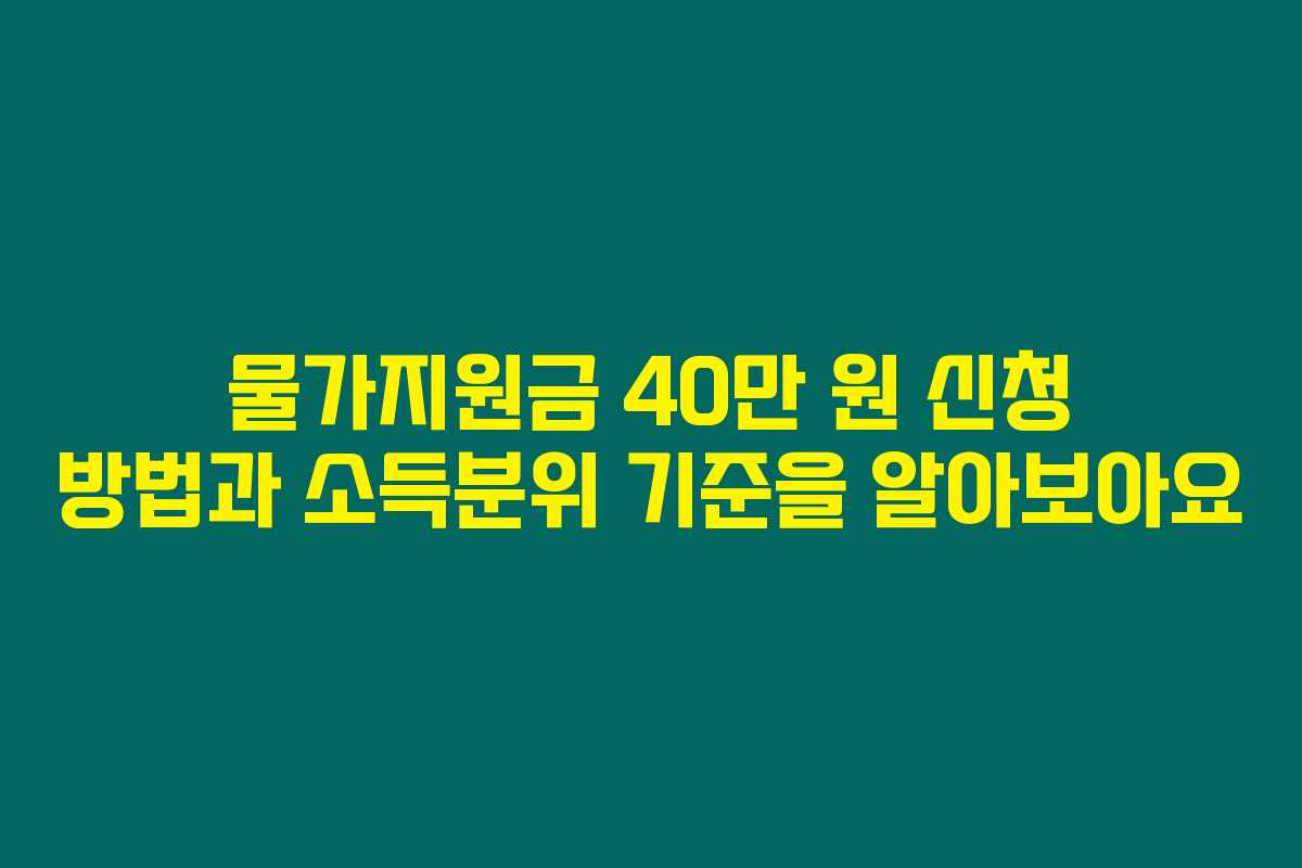 물가지원금 40만 원에 대한 다양한 정보와 신청 방법에 대해 알아보았습니다. 내가 속한 소득분위와 필요에 따라 잘 활용하셔서 경제적 부담을 덜어내시길 바랍니다.##