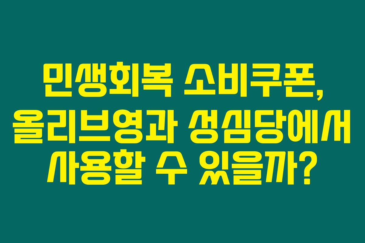 민생회복 소비쿠폰에 대해 궁금해하시는 분들이 많죠? 특히 올리브영과 성심당에서 사용할 수 있는지 여부는 소비자들에게 중요한 포인트일 거에요. 소비쿠폰이 지역 경제를 활성화하기 위해 어떤 형태로 사용될 수 있는지 아래를 읽어보시면 자세히 알 수 있을 거에요.