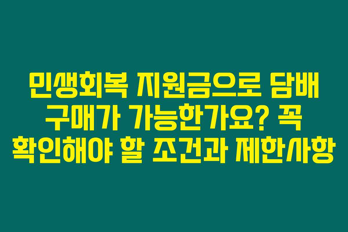 2025년 민생회복 지원금으로 담배를 구입하려고 하는데, 과연 가능한지 궁금하신가요? 담배 구매 가능 여부와 그에 따른 제한사항을 알면 더욱 현명하게 지원금을 활용할 수 있어요. 아마 담배 구매를 고려하는 분들이 많을 텐데, 정말 이 지원금으로 가능할까요?