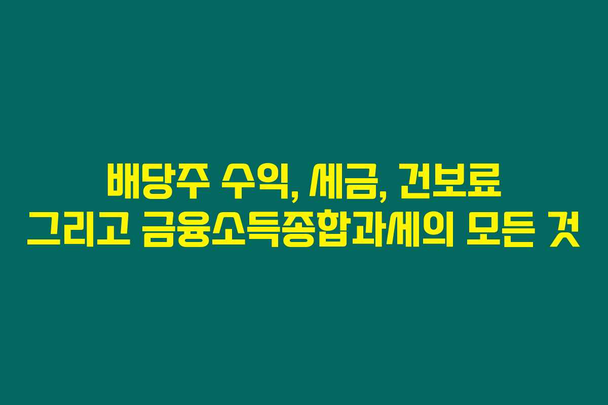 제가 직접 경험해본 결과로는 배당주 투자를 통한 수익은 단순히 투자 수익을 넘어서 여러 가지 세금과 건보료의 영향을 받는다는 것을 알게 되었습니다. 특히 배당금의 세금 처리와 함께 건강보험료에 대한 책임도 적지 않기 때문에 이 부분을 알고 준비하는 것이 필요하다고 느꼈습니다. 아래를 읽어보시면 배당주 투자 시 주의해야 할 세금과 건보료의 관계, 그리고 절세 방법에 대한 유용한 정보를 얻으실 수 있을 거예요.