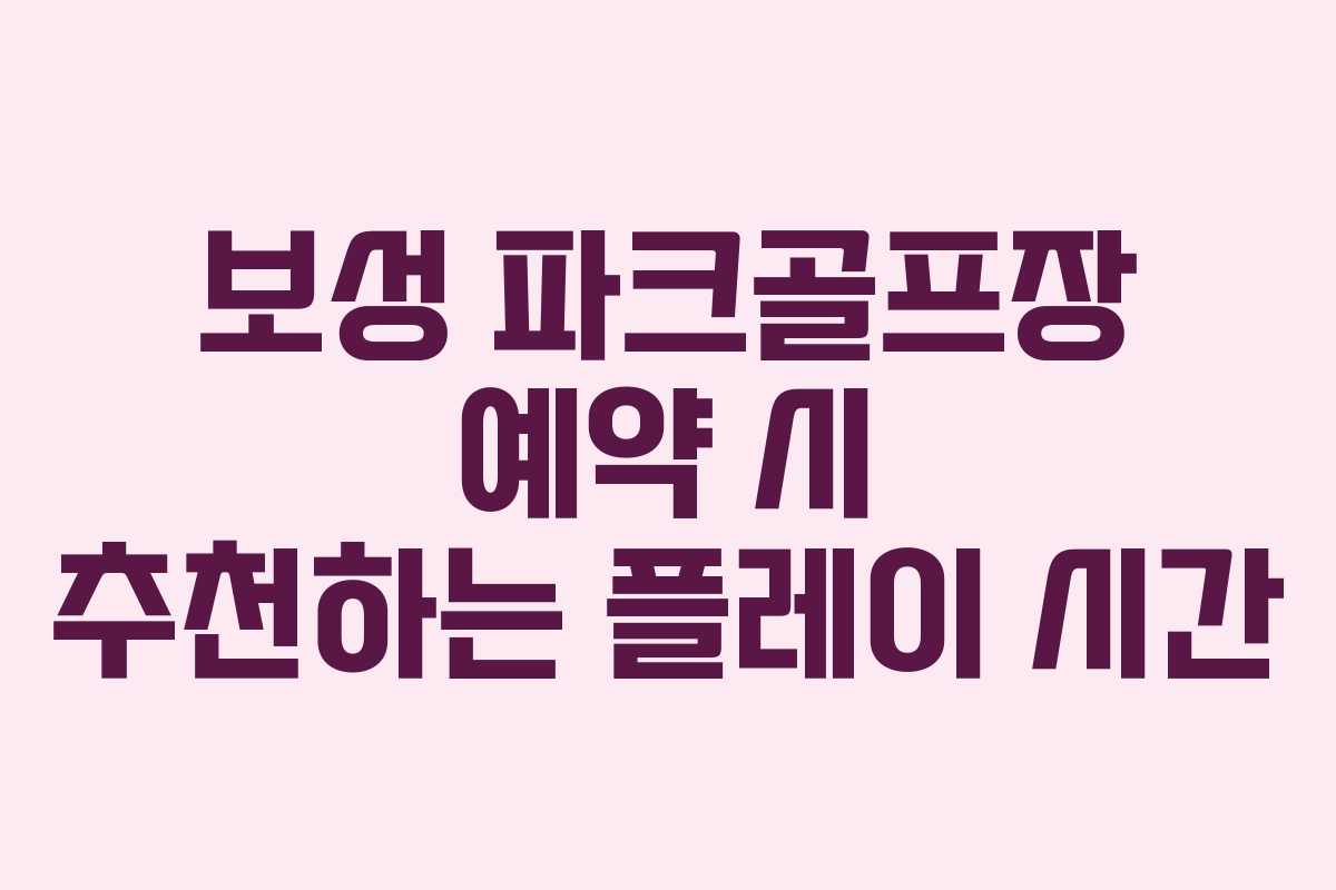 보성 파크골프장에서 추천하는 플레이 시간대는 다음과 같습니다: