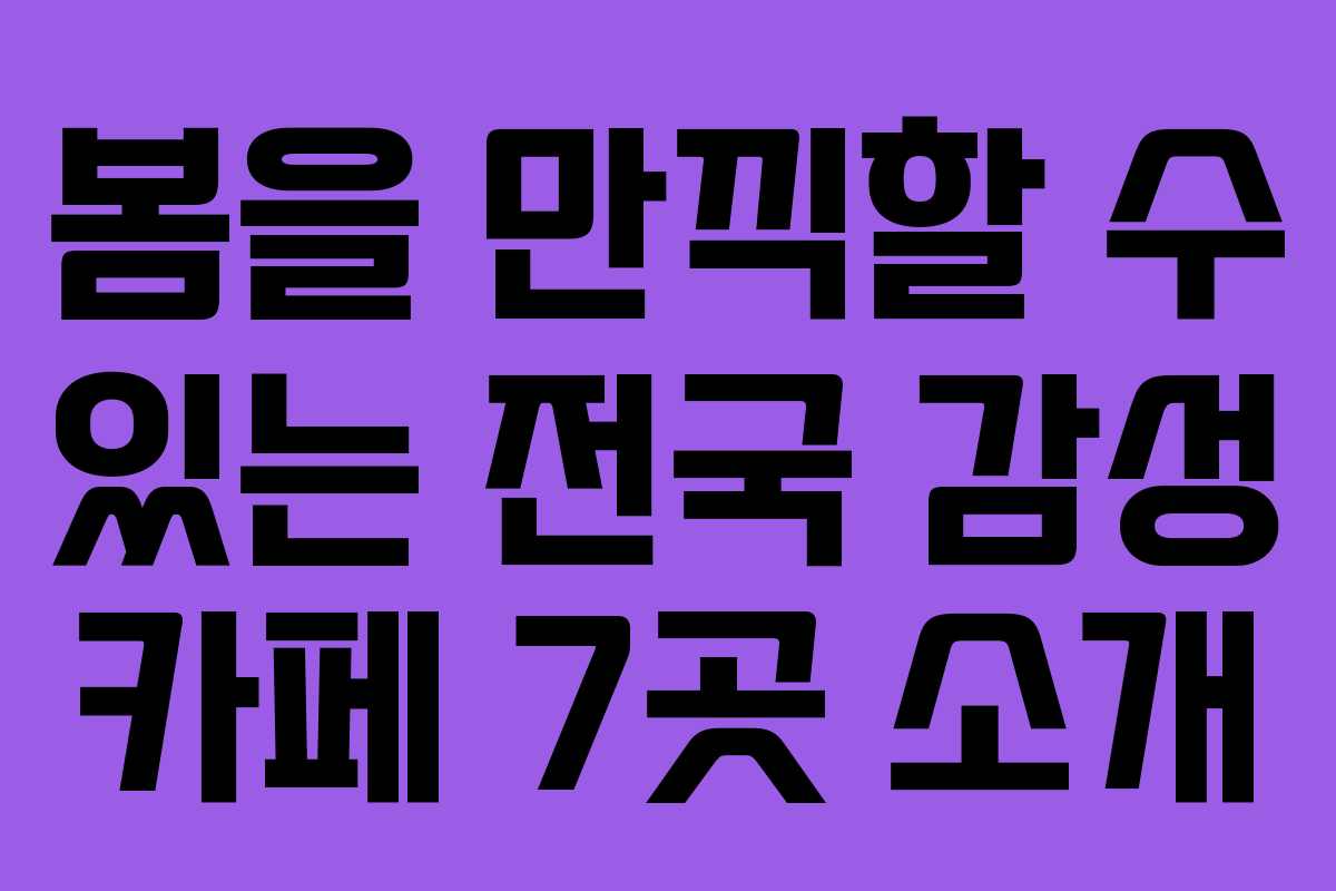 이렇게 봄에 가기 좋은 감성 카페 7곳을 소개해 드렸습니다. 각 카페마다 독특한 매력을 가지고 있으니, 여러분의 취향에 맞는 카페를 선택하여 즐거운 시간을 보내시길 바랍니다.