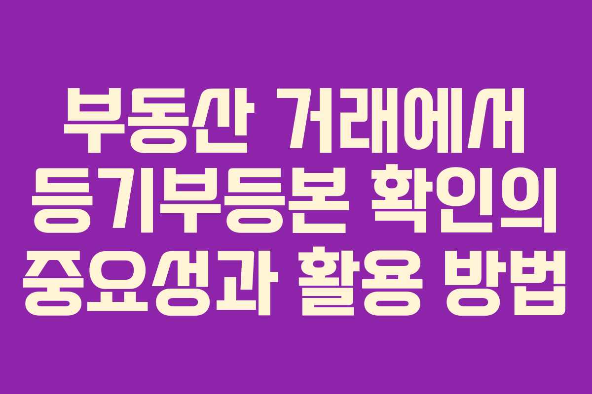 부동산 거래를 고려하고 있다면, 즉시 등기부등본을 열람하여 현재 소유권과 권리관계를 확인하는 것이 필요하다. 이를 통해 안전한 거래를 위한 첫걸음을 내딛을 수 있다.
