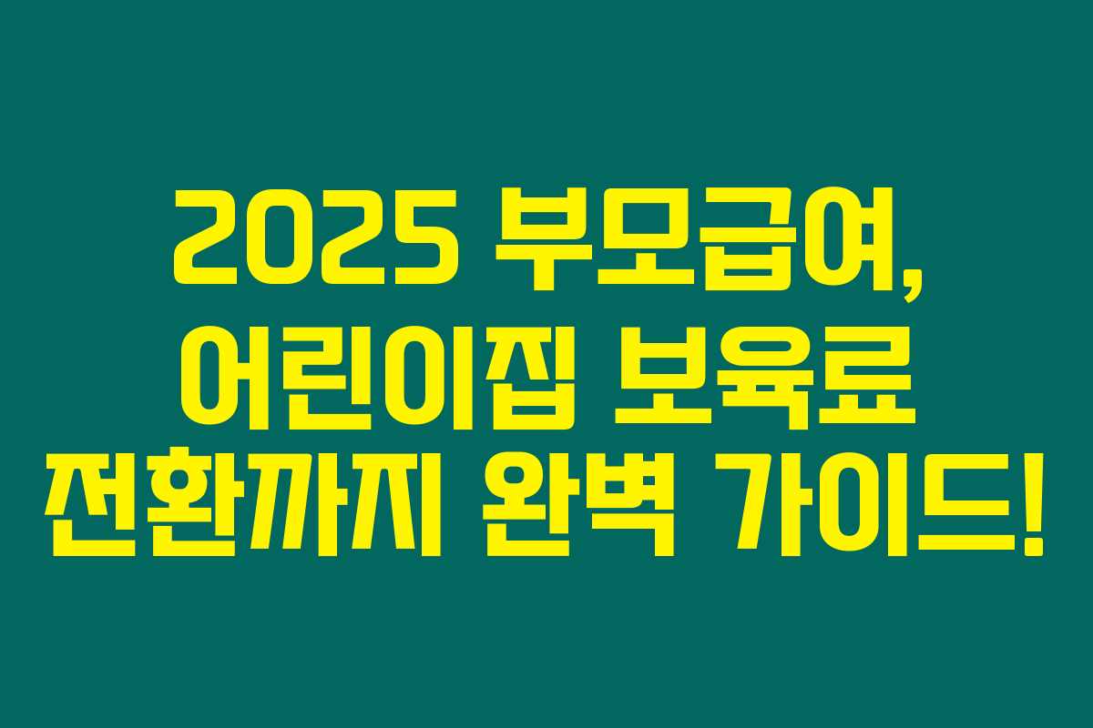 2025 부모급여, 어린이집 보육료 전환까지 완벽 가이드!