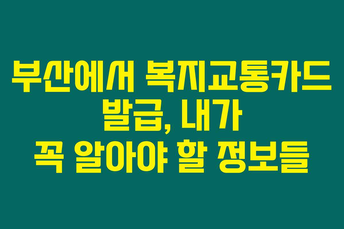제가 직접 경험해본 결과로는, 부산의 우대용 복지교통카드는 교통약자의 이동 편의를 위해 꼭 필요한 제도예요. 이 카드를 통해 대중교통을 무료로 이용할 수 있는 다양한 혜택이 제공된답니다. 아래를 읽어보시면, 복지교통카드의 종류와 발급대상, 신청방법, 그리고 사용처에 대한 정보가 가득하니 도움이 되실 거예요.