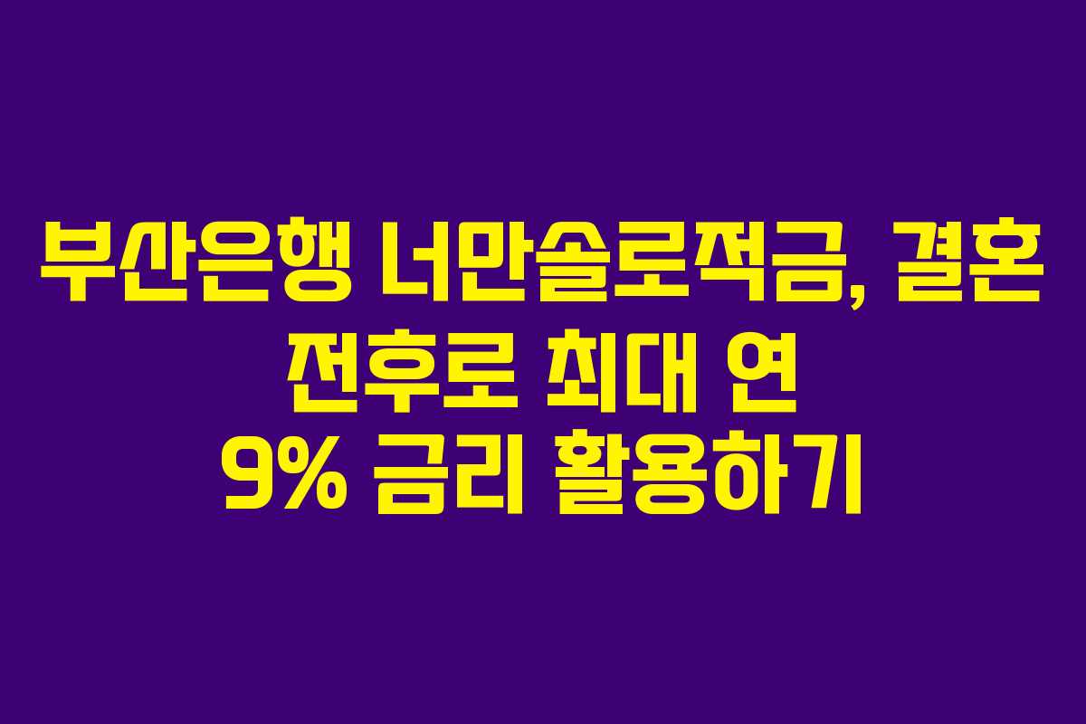 부산은행 너만솔로적금, 결혼 전후로 최대 연 9% 금리 활용하기