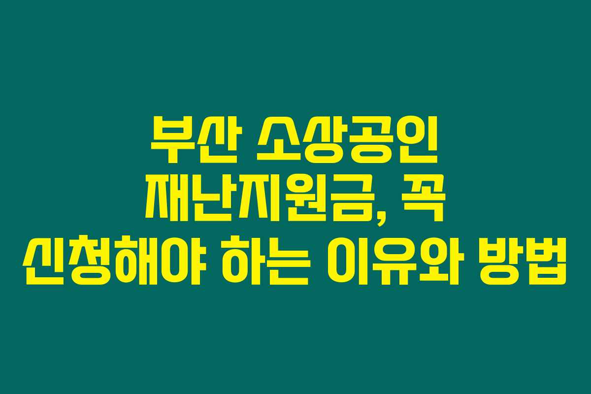 부산의 소상공인 여러분, 기회를 놓치지 마세요! 재난지원금으로 자금 부담을 덜고 사업을 유지하는 좋은 기회랍니다. 필요에 따라 필요한 서류를 준비하고 온라인으로 신청하세요!