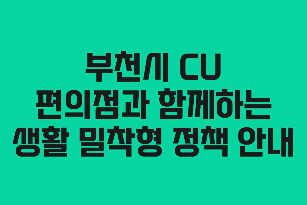부천시 CU 편의점과 함께하는 생활 밀착형 정책 안내