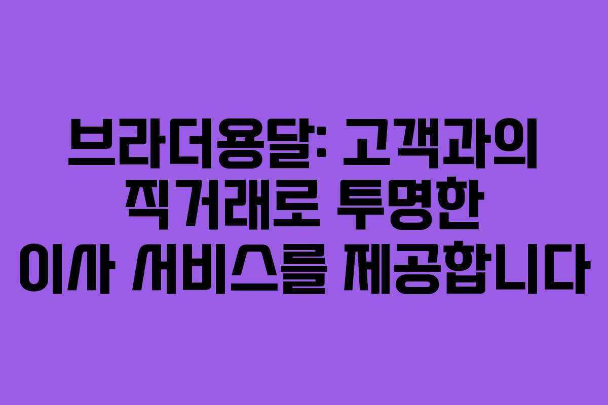 - 브라더용달의 투명한 이사 서비스와 실질적인 이점