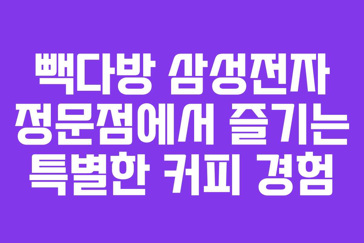 수원시 영통구에 위치한 빽다방 삼성전자 정문점은 커피 애호가들에게 사랑받는 명소입니다. 이곳은 바쁜 일상 속에서 여유를 찾을 수 있는 공간으로, 다양한 음료와 편안한 분위기를 제공합니다. 매장에 대한 정보와 특별한 이벤트를 통해 더욱 많은 이들이 이곳을 찾길 바랍니다.