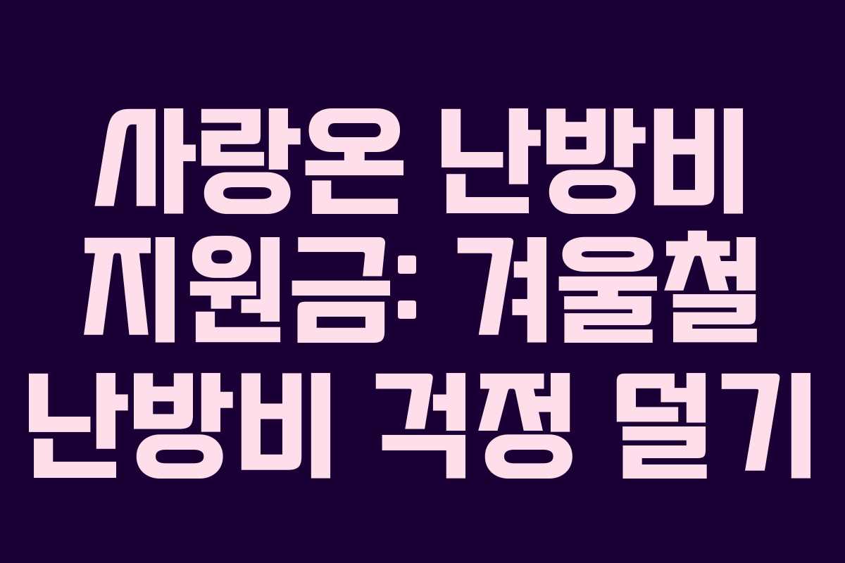 겨울철이 오면 난방비 걱정이 커지기 마련입니다. 특히 에너지 취약계층에게는 난방비가 생존과 직결된 문제로 다가옵니다. 그런 가운데, ‘사랑온 난방비 지원금’이 많은 도움이 될 수 있습니다. 이 제도에 대해 자세히 알아보겠습니다.