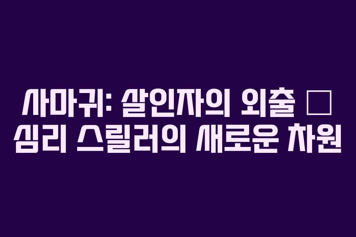 사마귀: 살인자의 외출 – 심리 스릴러의 새로운 차원
