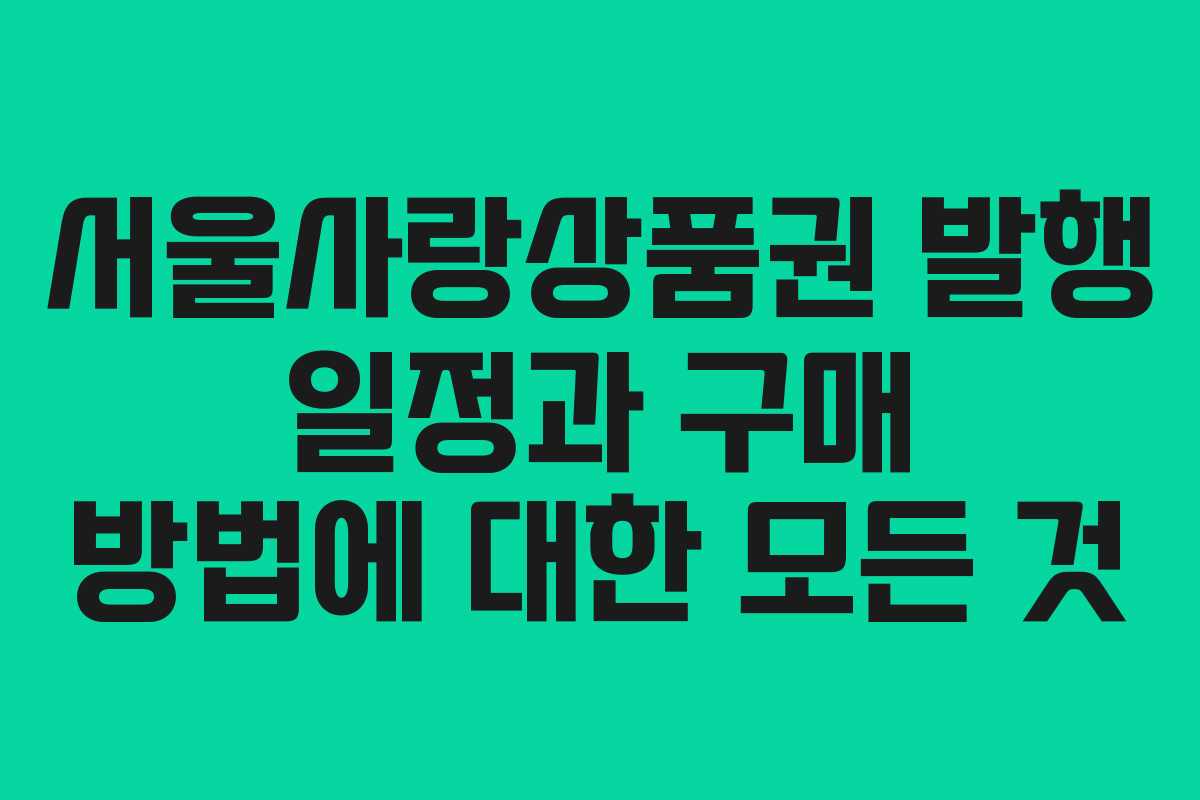서울사랑상품권 발행 일정과 구매 방법에 대한 모든 것