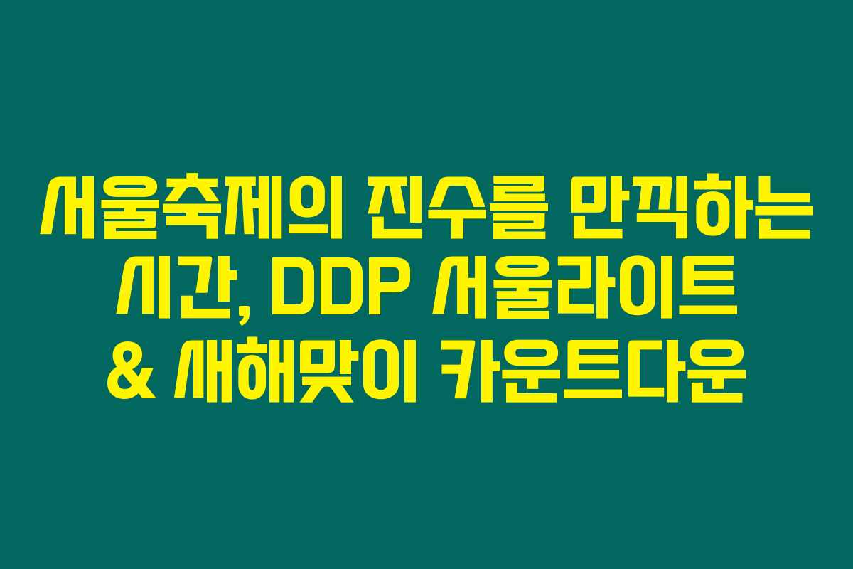 서울라이트 DDP는 2023년 12월 21일부터 2023년 12월 30일까지 진행되며, DDP 새해맞이 카운트다운은 2023년 12월 31일에서 2024년 1월 1일에 걸쳐 열립니다.