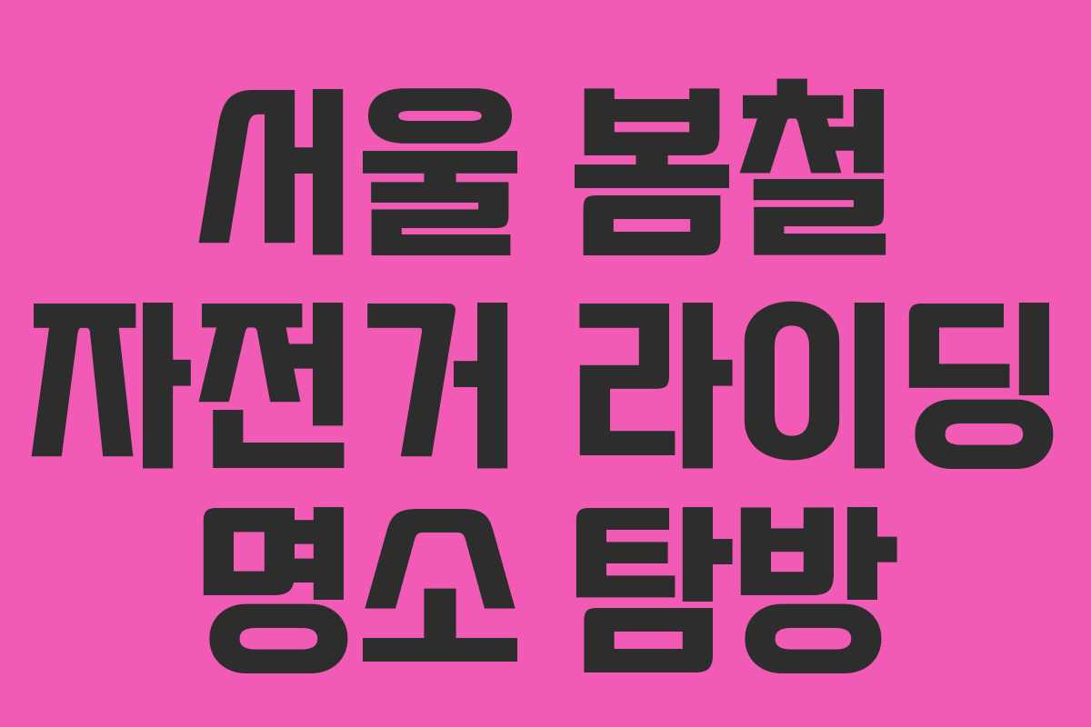 서울의 봄이 다가오면서 자전거를 타고 자연을 만끽할 수 있는 장소들이 주목받고 있다. 벚꽃이 만개하는 시즌, 서울의 자전거길을 따라 다양한 경치를 즐기며 봄의 정취를 느낄 수 있는 최적의 장소들을 소개한다. 이번 봄에는 안양천, 불광천, 중랑천을 따라 자전거 라이딩을 즐기며 특별한 경험을 쌓아보자.