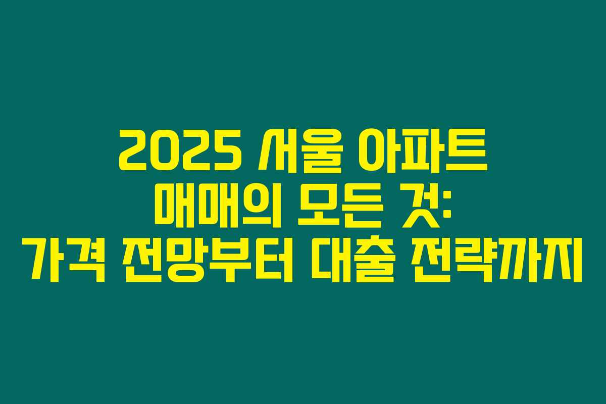 2025 서울 아파트 매매의 모든 것: 가격 전망부터 대출 전략까지