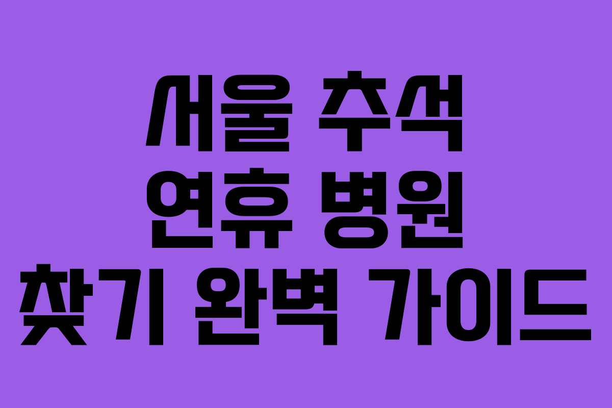 추석 연휴 동안 서울에서 문을 여는 병원과 약국을 찾는 것은 혼잡한 일입니다. 이 글에서는 서울 지역에서 연휴 중에도 진료를 받을 수 있는 의료기관과 약국, 24시간 운영되는 응급실을 효과적으로 찾는 방법을 설명합니다.