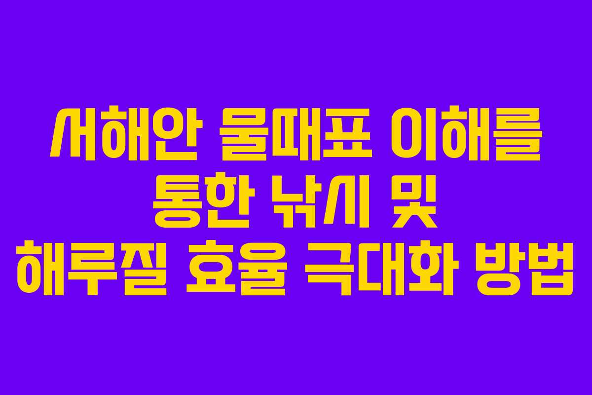 서해안에서 낚시나 해루질을 할 때 물때표를 제대로 이해하는 것은 매우 중요하다. 만조와 간조의 시기를 잘 파악하면 수확의 효율을 크게 높일 수 있기 때문이다. 본문에서는 물때표의 기본 개념부터 활용 방법까지 자세히 설명하겠다.