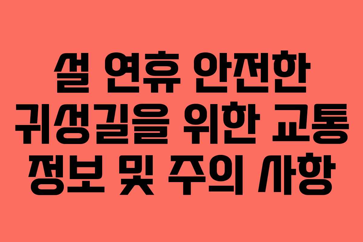 설 연휴는 가족과 함께하는 특별한 시간이다. 귀성길은 즐거운 만남을 위한 첫걸음이므로, 안전과 편의를 최우선으로 생각해야 한다. 교통 정보를 잘 활용하고, 안전 운전을 통해 모두가 행복한 연휴를 보내길 바란다.