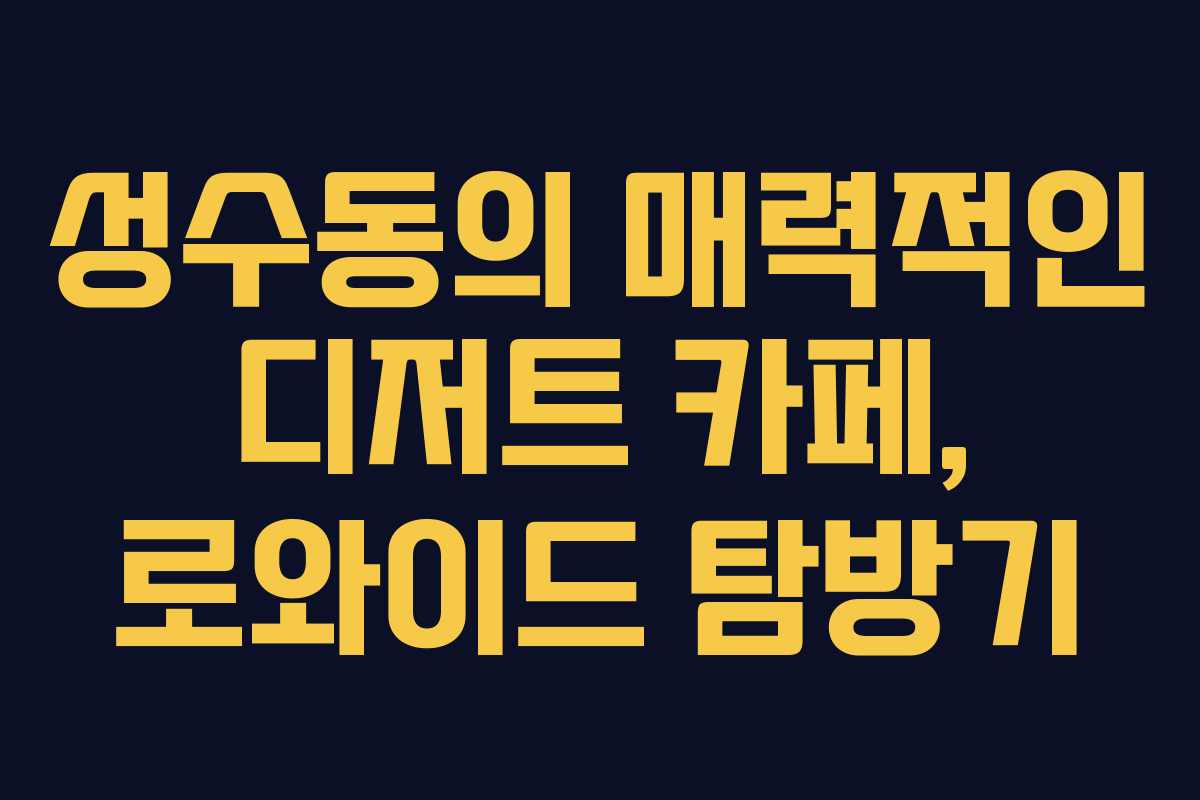 성수동은 최근 몇 년간 서울의 핫플레이스로 자리잡으면서 다양한 카페와 디저트 맛집이 생겨났습니다. 그 중에서도 ‘로와이드’는 특히 눈길을 끄는 곳으로, 제가 직접 다녀온 경험을 바탕으로 자세히 소개하겠습니다. 이 카페는 독특한 디저트 비주얼과 맛으로 많은 이들의 사랑을 받고 있습니다.