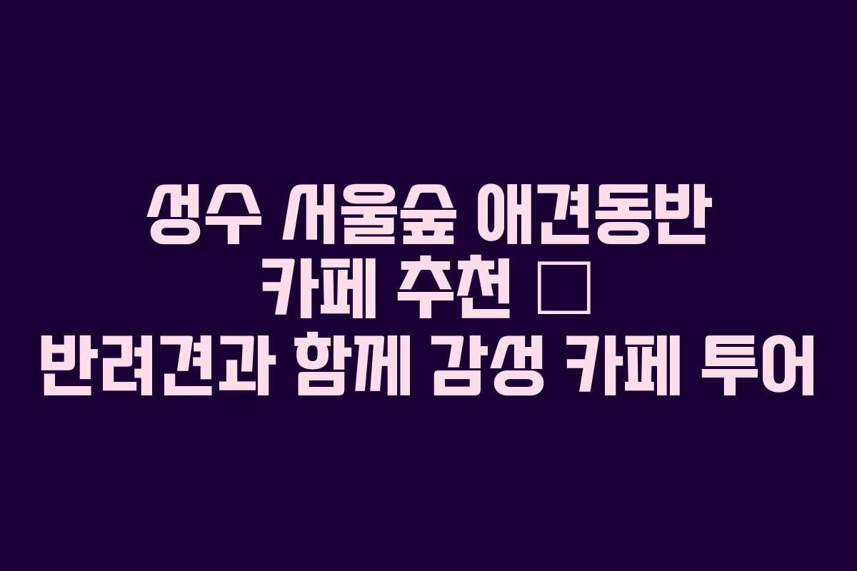 성수 서울숲 근처는 반려견과 함께하기 좋은 감성 카페들이 가득한 곳입니다. 다양한 분위기와 독특한 메뉴가 있는 카페들을 소개하겠습니다. 이곳에서 반려견과 함께 특별한 시간을 보내며 여유를 만끽해보세요.