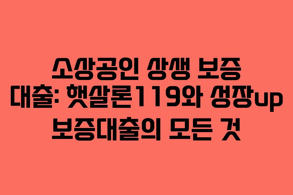 소상공인을 위한 금융지원은 그들의 사업 지속 가능성과 성장을 촉진하는데 핵심적인 역할을 합니다. 최근 금융당국과 은행권이 협력하여 출시한 소상공인 상생 보증 대출은 폐업 위기나 재정적 어려움을 겪고 있는 소상공인들에게 새로운 기회를 제공하는 중요한 대출 상품입니다. 이 글에서는 소상공인 상생 보증 대출의 주요 내용을 살펴보고, 햇살론119와 성장up 보증대출의 신청 자격, 대출 한도, 금리 및 상환 조건을 명확히 설명하겠습니다. 또한 대출을 받기 위한 필수 조건과 신청 절차도 안내하니, 자금이 필요한 소상공인 분들은 끝까지 읽어보시고 적절한 대출 상품을 선택하시기 바랍니다.