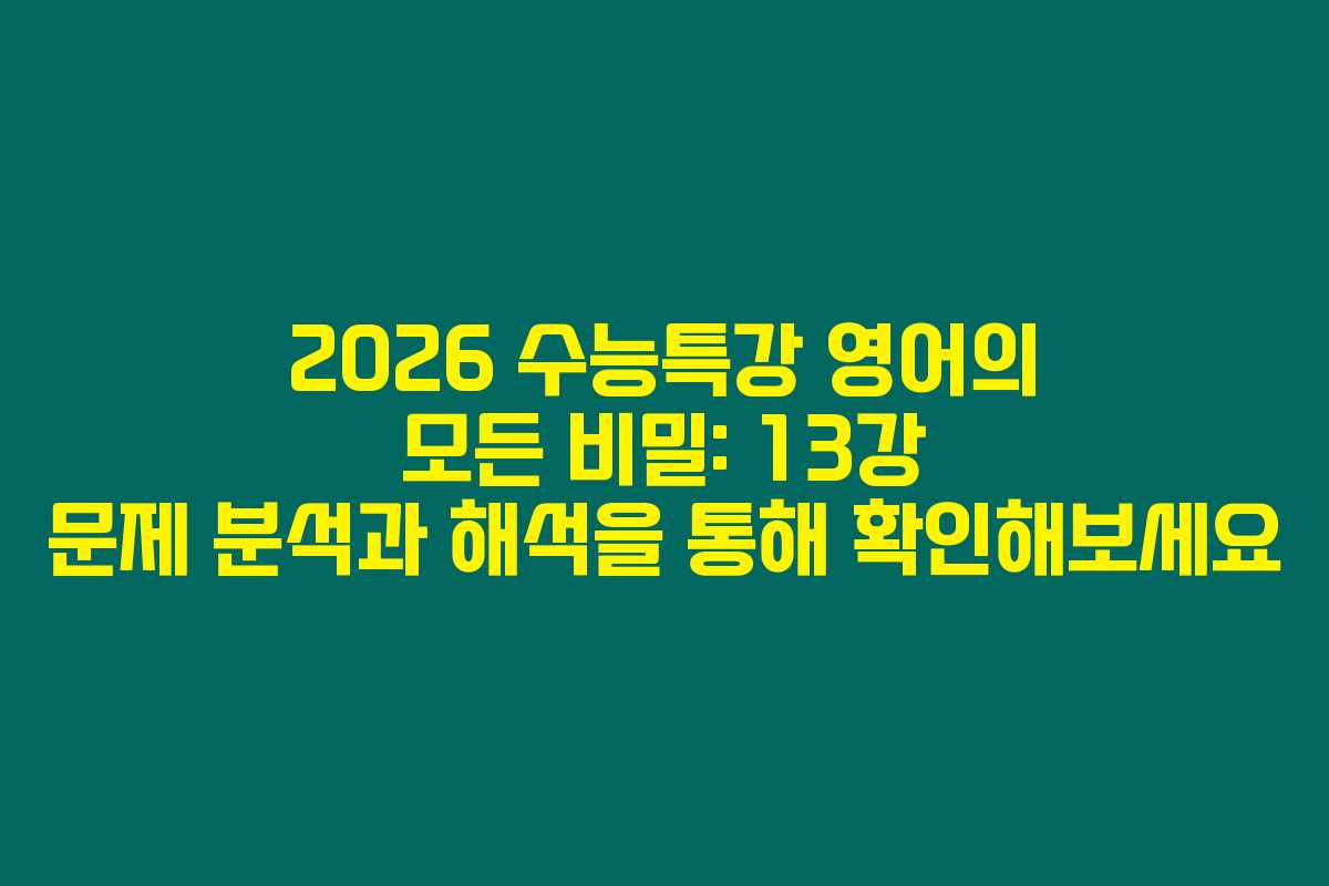혹시 2026 수능특강 영어 13강을 준비하면서 어려운 문제로 고민하고 계신가요? 매년 수능이 다가오면서 많은 학생들이 이 문제에 대해 대처하기 어려운 경우가 많습니다. 아래를 읽어보시면 13강의 문제를 분석하고 해석하는 방법을 통해 학습의 지름길을 알게 될 거예요.