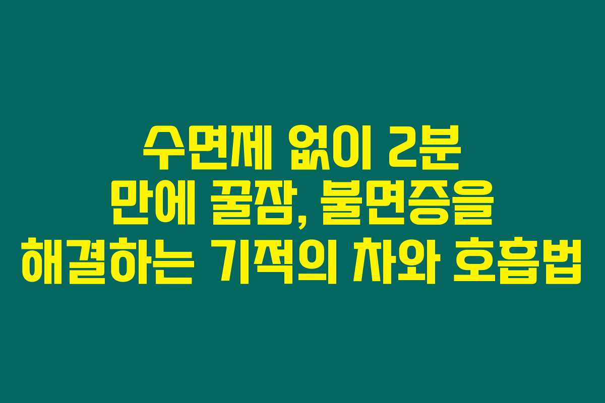 불면증으로 고통 받고 계신다면 이 글을 주목해주세요. 최근 많은 사람들이 겪고 있는 불면증, 이로 인해 지치고 힘든 날이 많을 거예요. 수면제에 의존하지 않고도 2분 만에 꿀잠을 잘 수 있는 방법이 있다는 사실, 알고 계셨나요? 아래를 읽어보시면 불면증을 효과적으로 극복할 수 있는 차와 호흡법을 소개할게요.