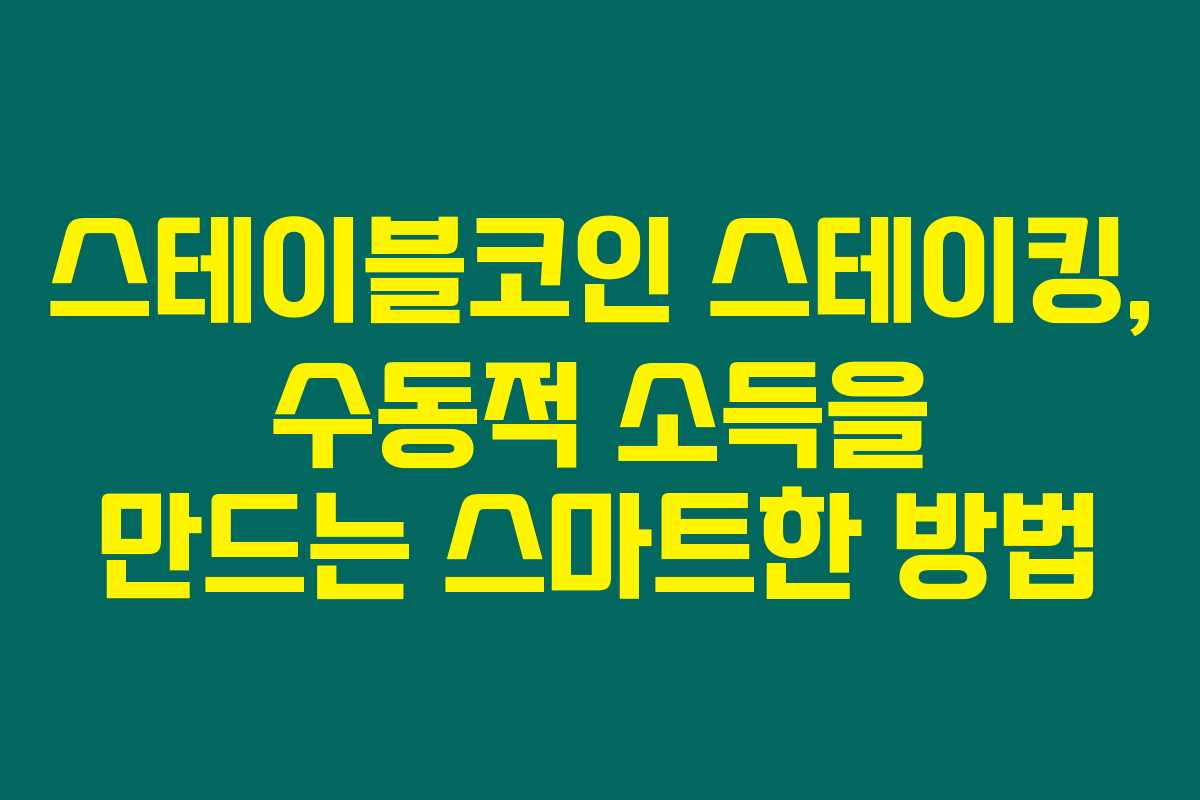 스테이블코인 스테이킹, 수동적 소득을 만드는 스마트한 방법