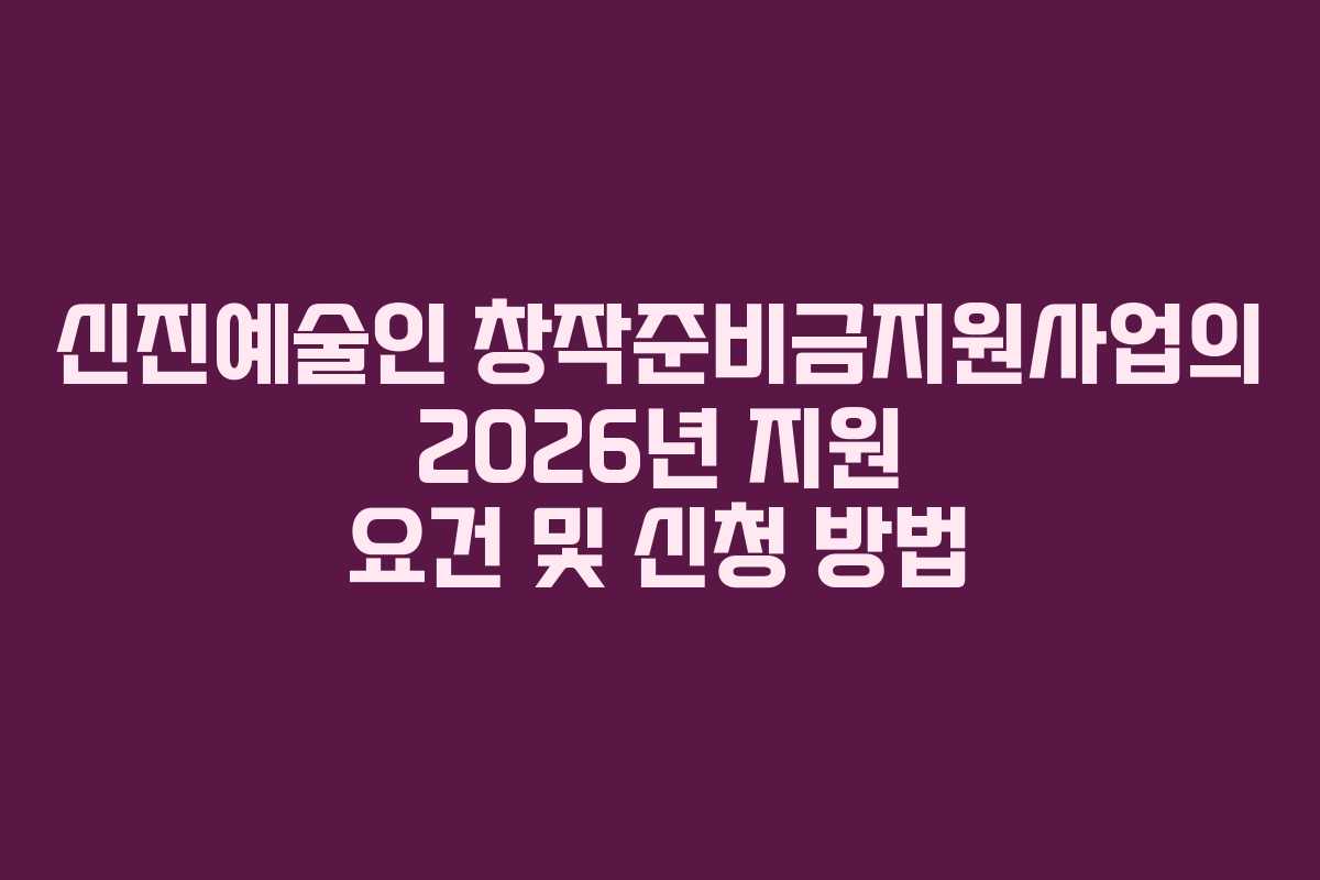 신진예술인을 위한 창작준비금지원사업은 2026년 기준으로 생애 1회에 한해 1인당 최대 200만원을 지원합니다. 이 지원금은 예술활동증명을 완료한 신진예술인에게 제공되며, 창작 활동에 필요한 다양한 자원을 확보하는 데 큰 도움이 될 것입니다.