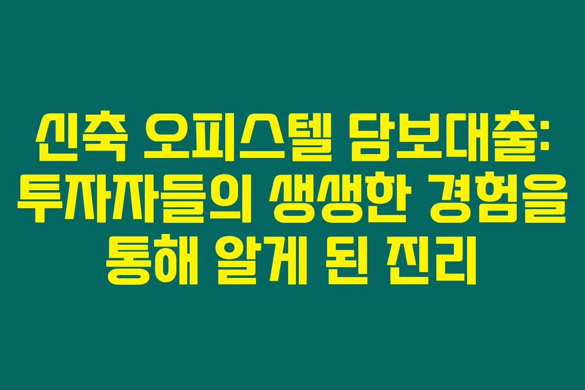- 신축 오피스텔 담보대출: 현실적 장벽