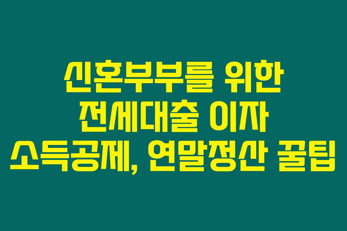 - 신혼부부가 알아야 할 전세대출 이자 소득공제 조건