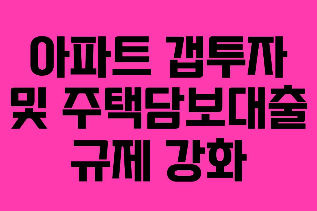 최근 정부의 부동산 대책 발표로 아파트 갭투자와 관련된 주택담보대출 및 전세자금대출 규제가 강화되었습니다. 이 글에서는 변경된 규제 사항을 자세히 살펴보며, 주택 구매 시 유의해야 할 점을 다루고자 합니다.