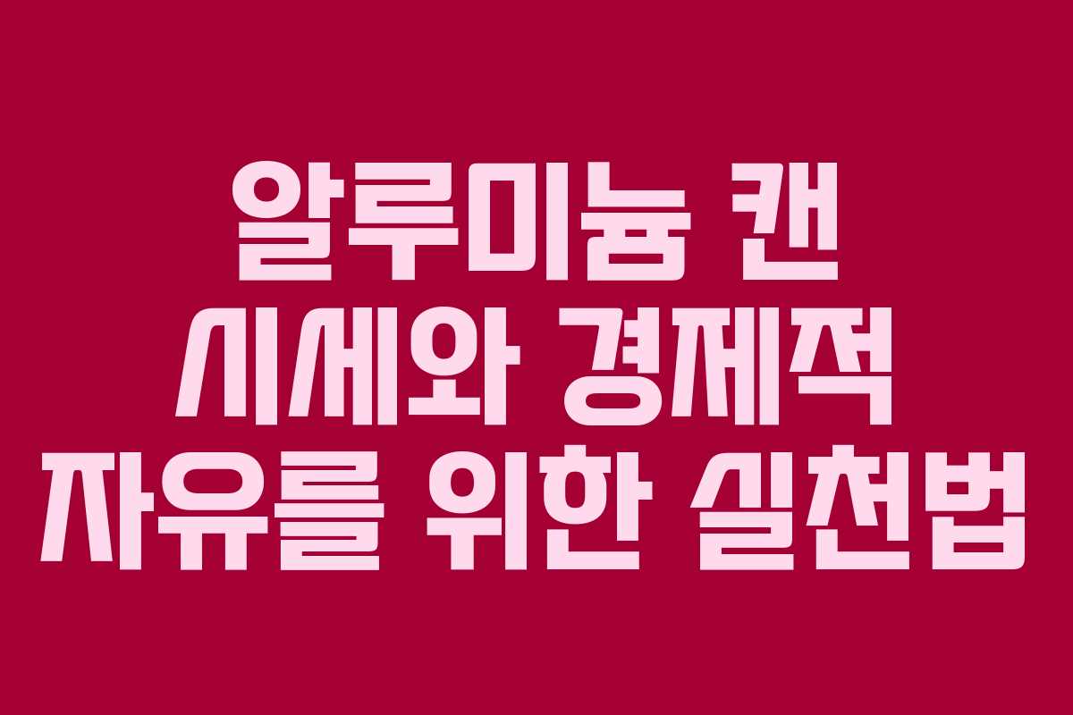 알루미늄 캔을 활용한 경제적 자유의 실전 가이드