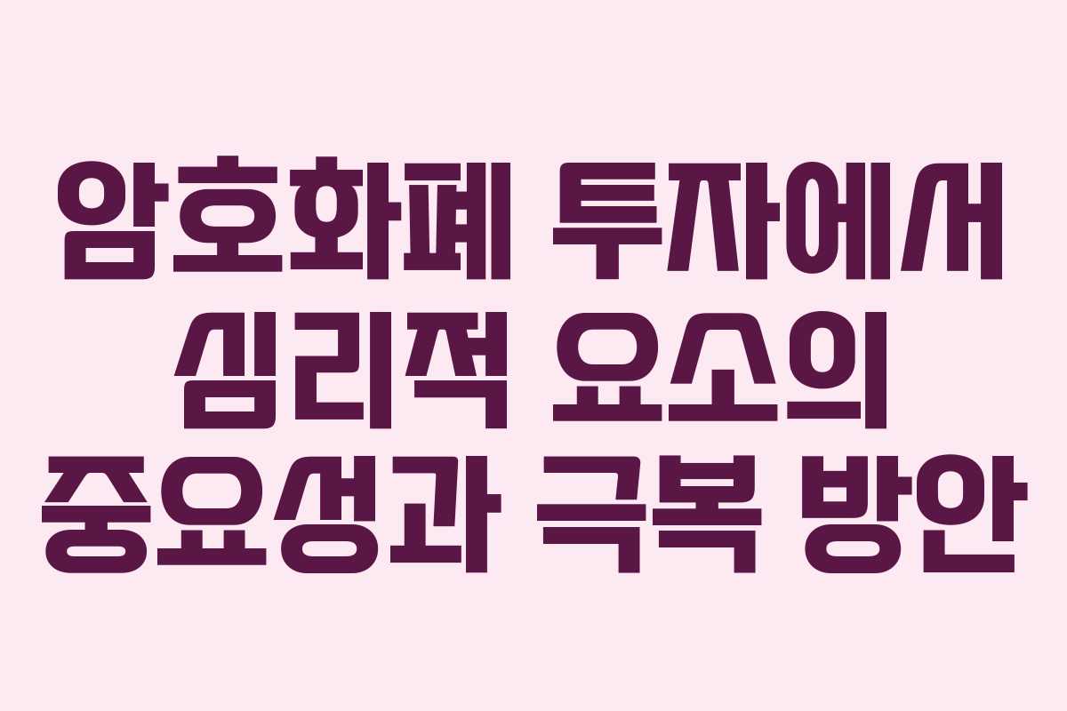 코인 투자에서 심리를 다스리는 능력은 성공의 열쇠입니다. 탐욕과 공포를 극복하고 체계적인 투자 원칙을 세운다면 안정적인 수익을 기대할 수 있습니다.