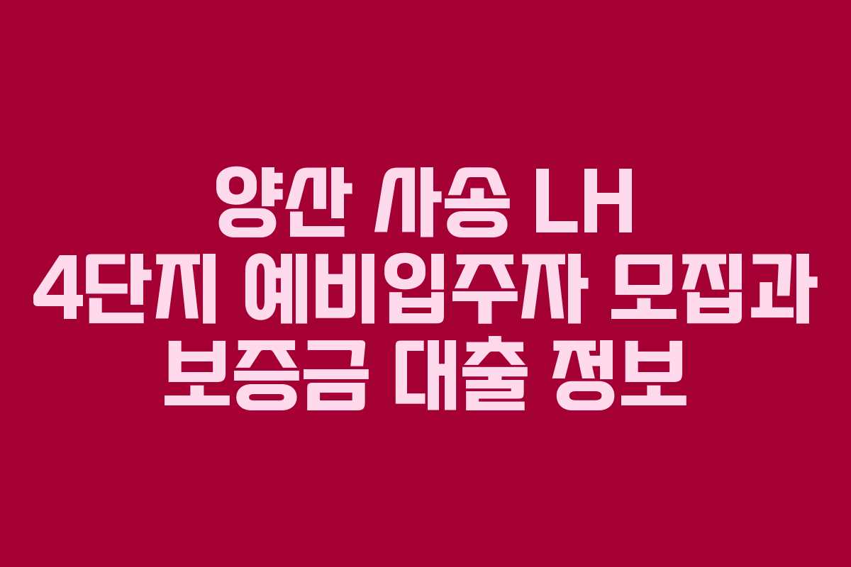 양산 사송 LH 4단지에 대한 예비입주자 모집과 관련된 정보를 제공하겠습니다. 이 아파트는 2024년에 입주를 시작하며, 2026년 기준으로 보증금 대출과 신청 방법을 중심으로 자세히 설명하겠습니다.
