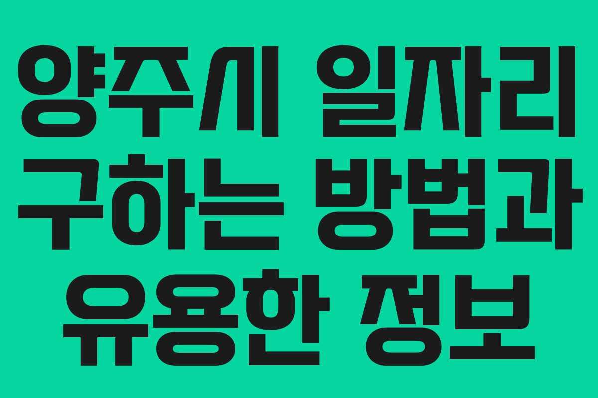 양주시 일자리 구하는 실전 가이드