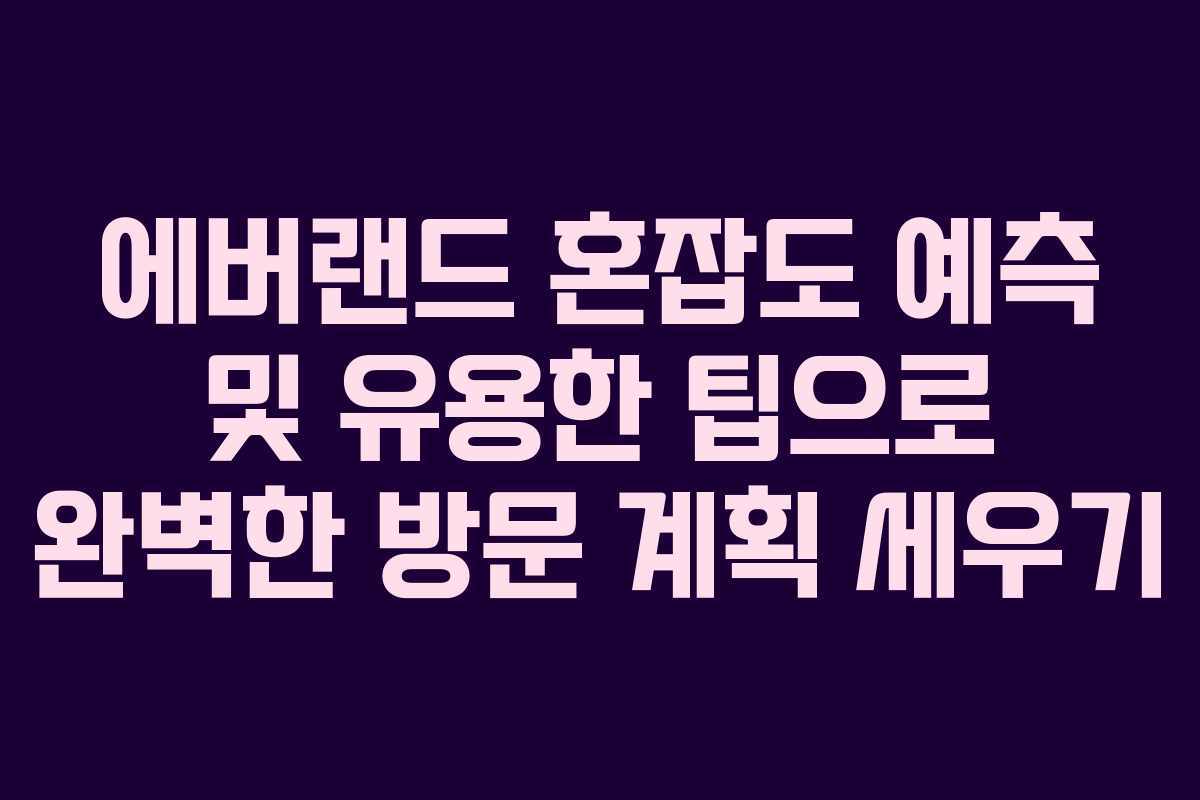 에버랜드는 많은 이들에게 즐거움과 설렘을 선사하는 장소입니다. 하지만 혼잡한 시간대에 방문하면 기대와는 달리 불편함을 겪을 수도 있습니다. 그러므로 사전에 혼잡도를 예측하고 알찬 팁을 활용하는 것이 중요합니다. 이번 글에서는 2026년 기준으로 에버랜드의 혼잡도를 예측하는 방법과 함께 유용한 팁을 제공하여 더욱 즐거운 방문이 될 수 있도록 안내하겠습니다.