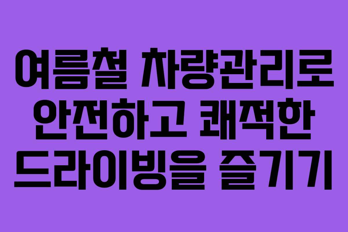 여름철 차량 관리는 정기적인 점검과 관리가 필요합니다. 차량 상태를 체크하고 필요한 조치를 취함으로써 안전한 드라이빙을 보장할 수 있습니다. 이러한 관리 방법을 통해 쾌적한 주행 환경을 만들어갈 수 있습니다.