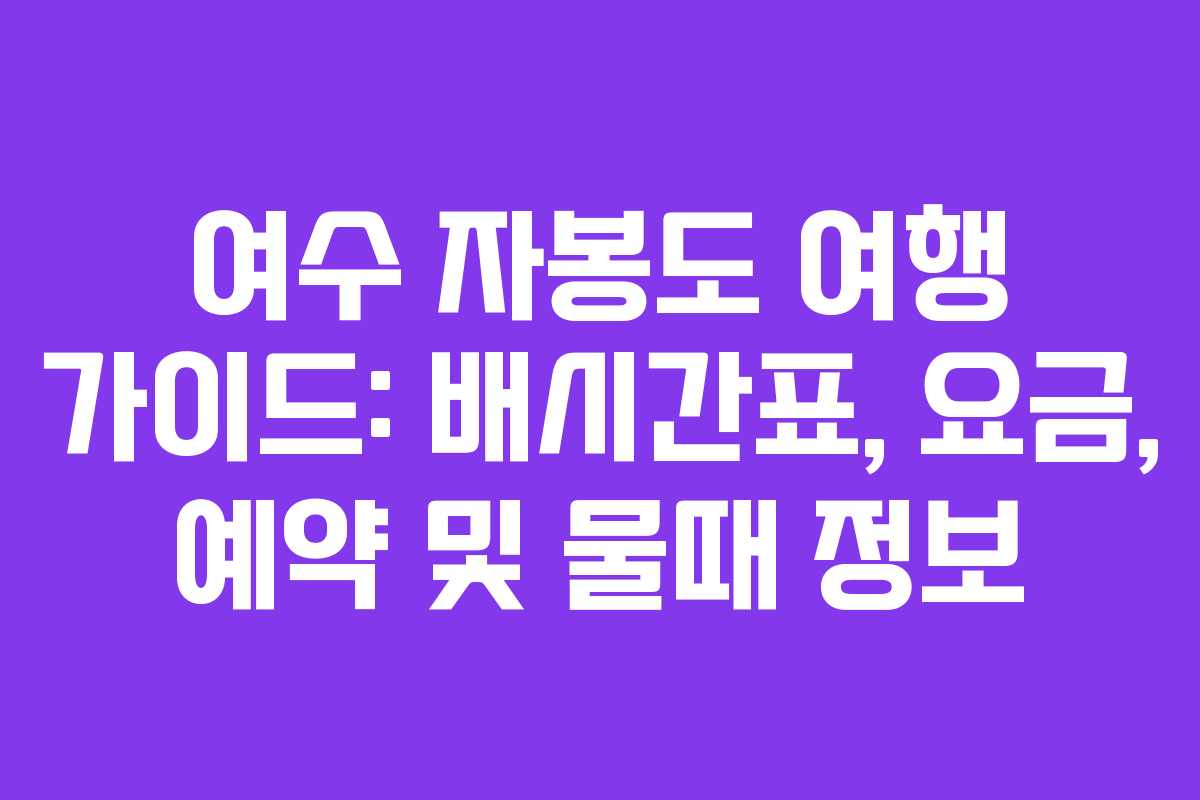 여수 자봉도는 아름다운 해안선과 조용한 분위기로 힐링을 원하는 여행자들에게 인기 있는 섬입니다. 이 글에서는 여수에서 자봉도로 가는 배시간표, 요금, 예약 방법, 그리고 물때 정보를 자세히 안내합니다.