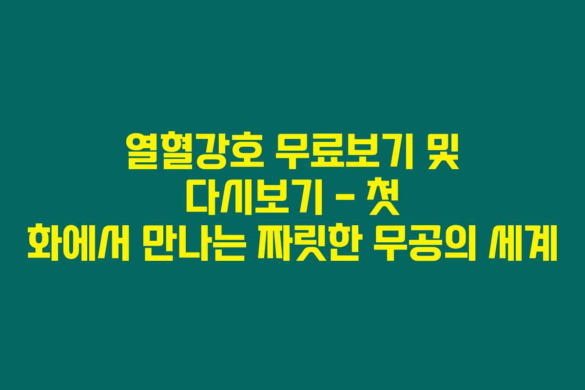 무술과 우정으로 가득 찬 열혈강호의 세계를 경험해보고 싶으신가요? 이 글을 통해 열혈강호 무료보기와 다시보기의 모든 정보를 공개합니다. 추억을 불러일으키는 최고의 만화, 이 기회를 놓치지 마세요!