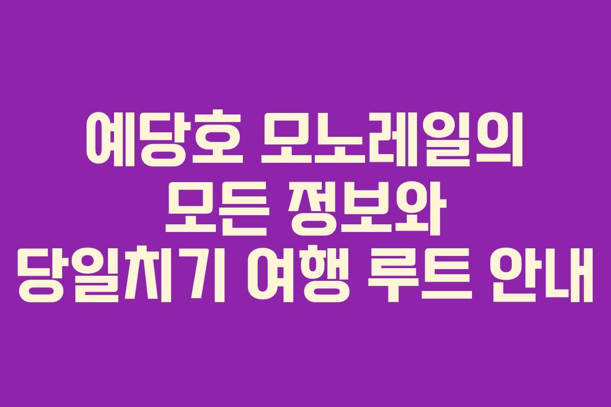 예당호 모노레일은 충남 예산군 응봉면에 위치한 아름다운 관광 명소입니다. 이곳은 자연의 아름다움과 함께 특별한 경험을 제공합니다. 오늘은 예당호 모노레일 예약 방법, 운영 시간, 요금, 휴무일, 그리고 효율적인 당일치기 여행 루트에 대해 자세히 알아보겠습니다.