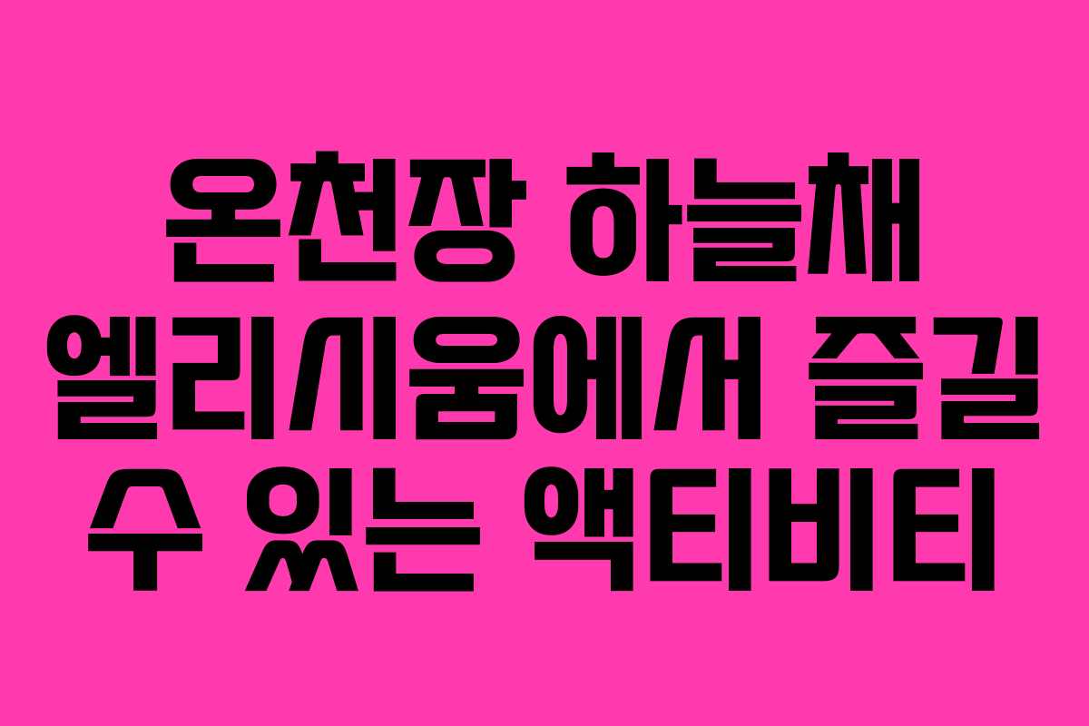 온천은 몸과 마음을 편안하게 해주는 특별한 공간입니다. 특히 하늘채 엘리시움에서는 다양한 액티비티를 통해 더욱 즐거운 경험을 제공합니다. 제가 다녀온 후기를 바탕으로 이곳에서 즐길 수 있는 액티비티를 자세히 소개하겠습니다.
