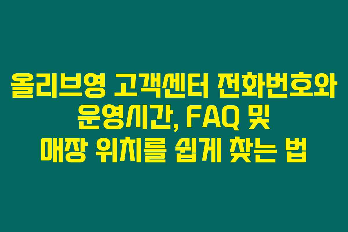 올리브영을 자주 이용하는 분들에게 필수 정보입니다. 올리브영 고객센터 전화번호 및 운영시간, 궁금한 FAQ, 매장 위치를 찾고 싶다면 아래를 꼭 확인해보세요. 여러분의 질문이 빠르게 해결될 수 있는 방법을 안내해 드릴게요.