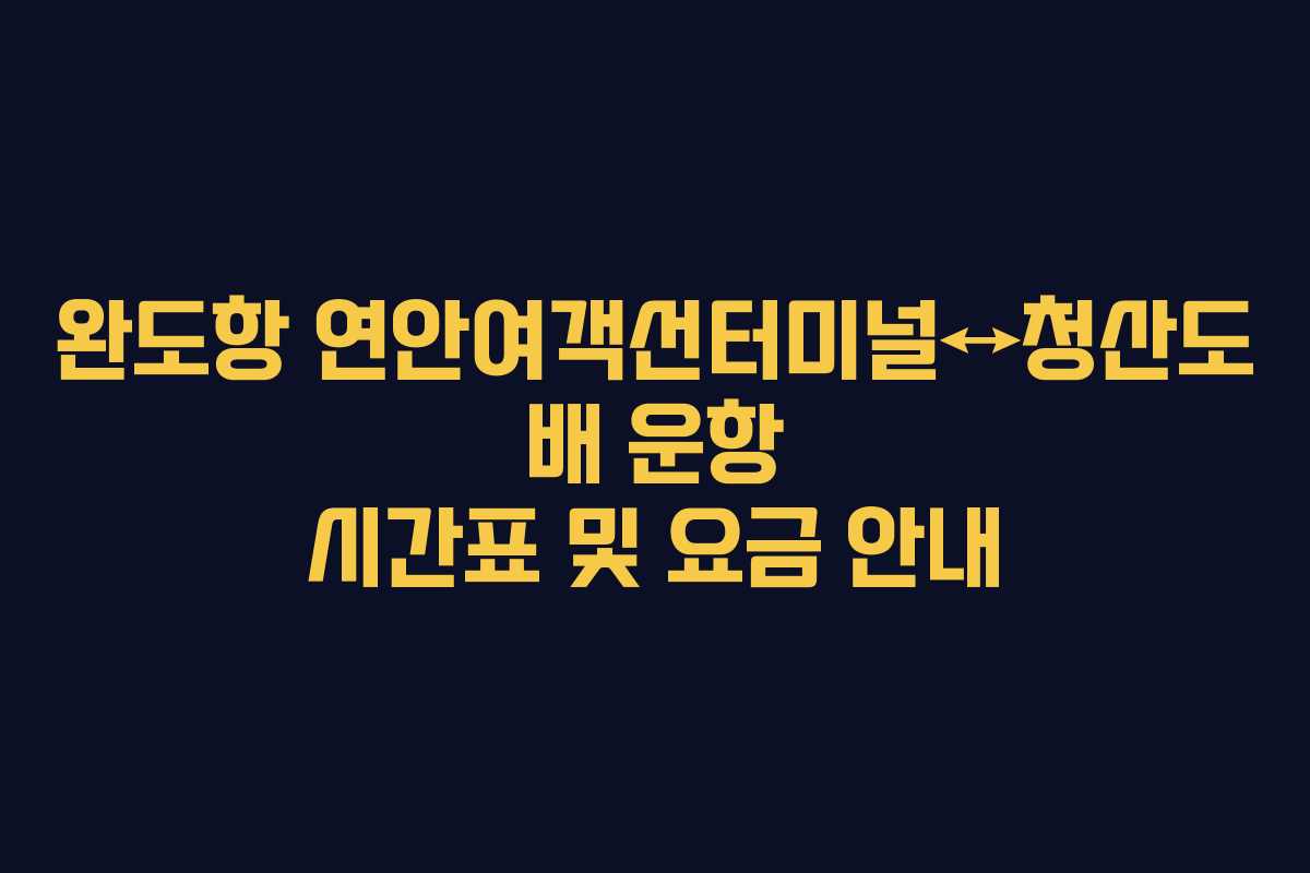 완도항과 청산도를 연결하는 여객선의 운항 정보는 많은 이들에게 유용한 자료가 될 것입니다. 청산도는 아름다운 자연경관과 함께 다양한 매력을 지닌 섬으로, 많은 관광객들이 찾는 곳입니다. 본 글에서는 청산도로 가는 배의 운항 시간표, 요금, 차량 요금 등을 자세히 안내하겠습니다. 최신 정보를 반영하여 독자 여러분에게 유익한 정보를 제공하고자 합니다.