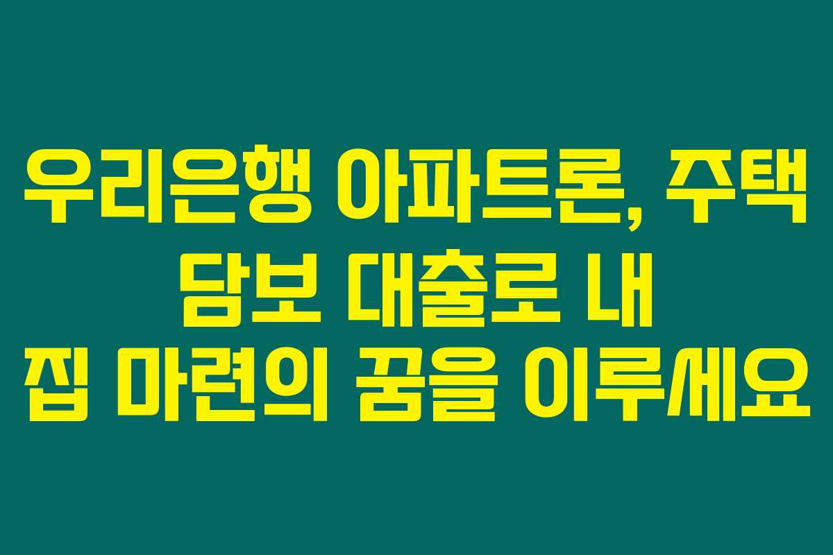 제가 직접 경험해본 결과로는, 우리은행 주택담보대출 우리아파트론은 아파트를 담보로 해 좀 더 유리한 조건으로 대출을 받을 수 있는 훌륭한 상품이에요. 대출의 조건이나 신청 방법을 알고 계시다면 주택 구매를 위한 큰 도움이 될 수 있답니다. 아래를 읽어보시면 우리은행 아파트론의 자격 조건 및 신청 방법에 대해 자세히 알아볼 수 있습니다.